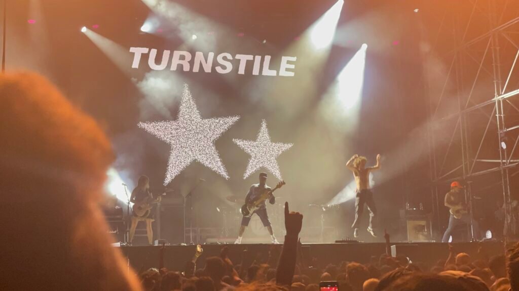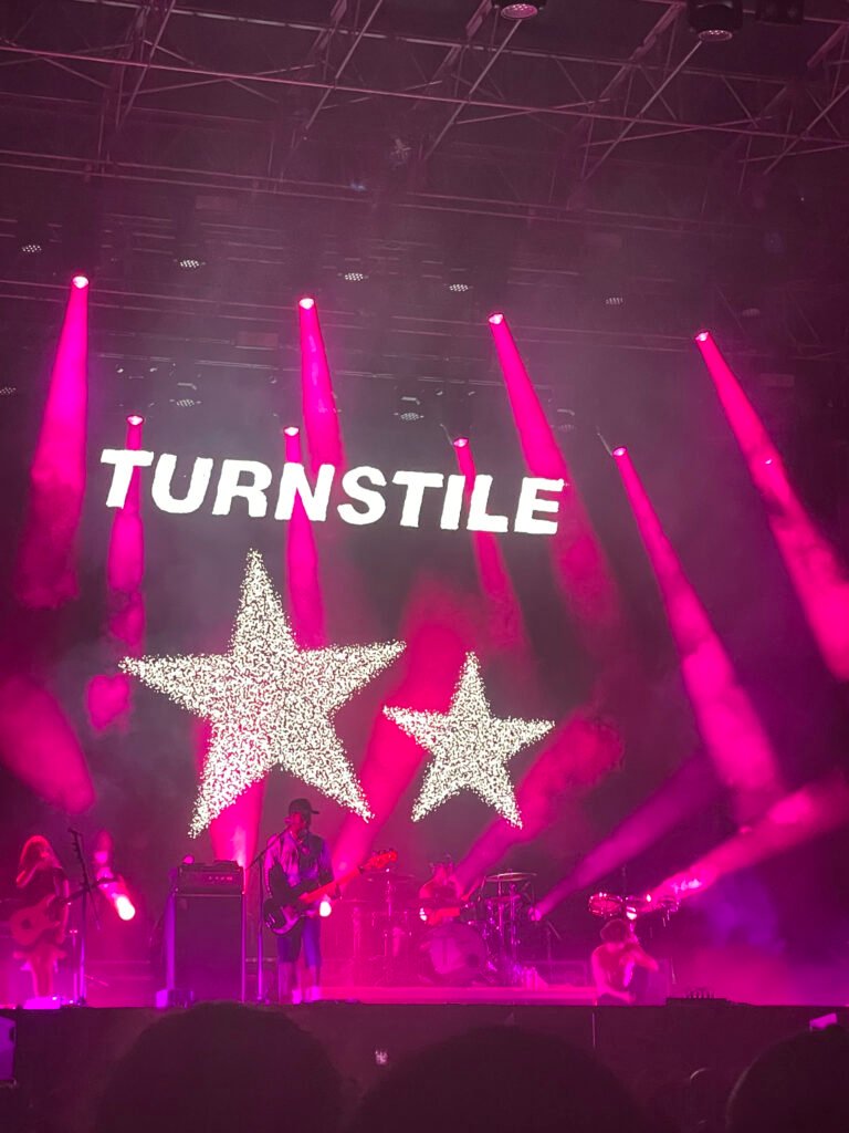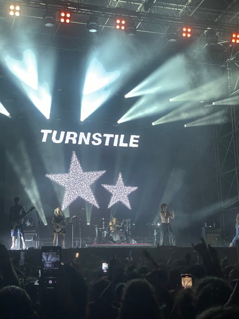 È un set molto coinvolgente, il loro, senza troppa enfasi, che comunque ha l’infausto compito di essere preludio del caos che si sarebbe scatenato da lì a circa una mezz’ora dopo, quando l’atmosfera si carica all’inverosimile e compare la scritta Turnstile dalla scenografia in background.