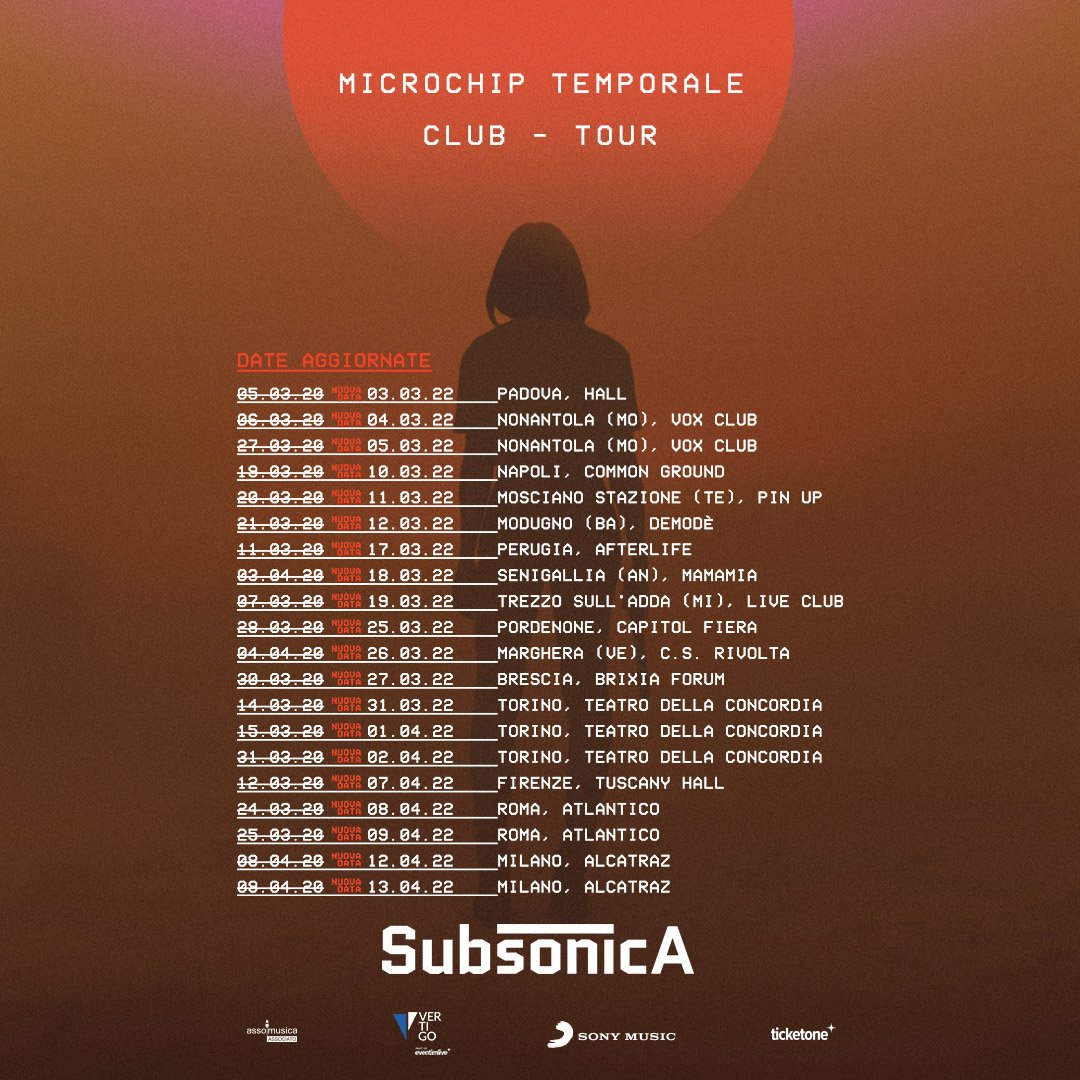 Subsonica, il “Microchip Temporale Tour Club” è posticipato a marzo e aprile 2022