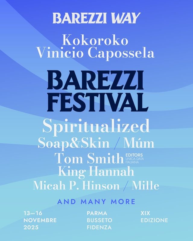BAREZZI FESTIVAL: TOM SMITH (Editors), SPIRITUALIZED, KING HANNAH, SOAP & SKIN, MÚM e tanti altri