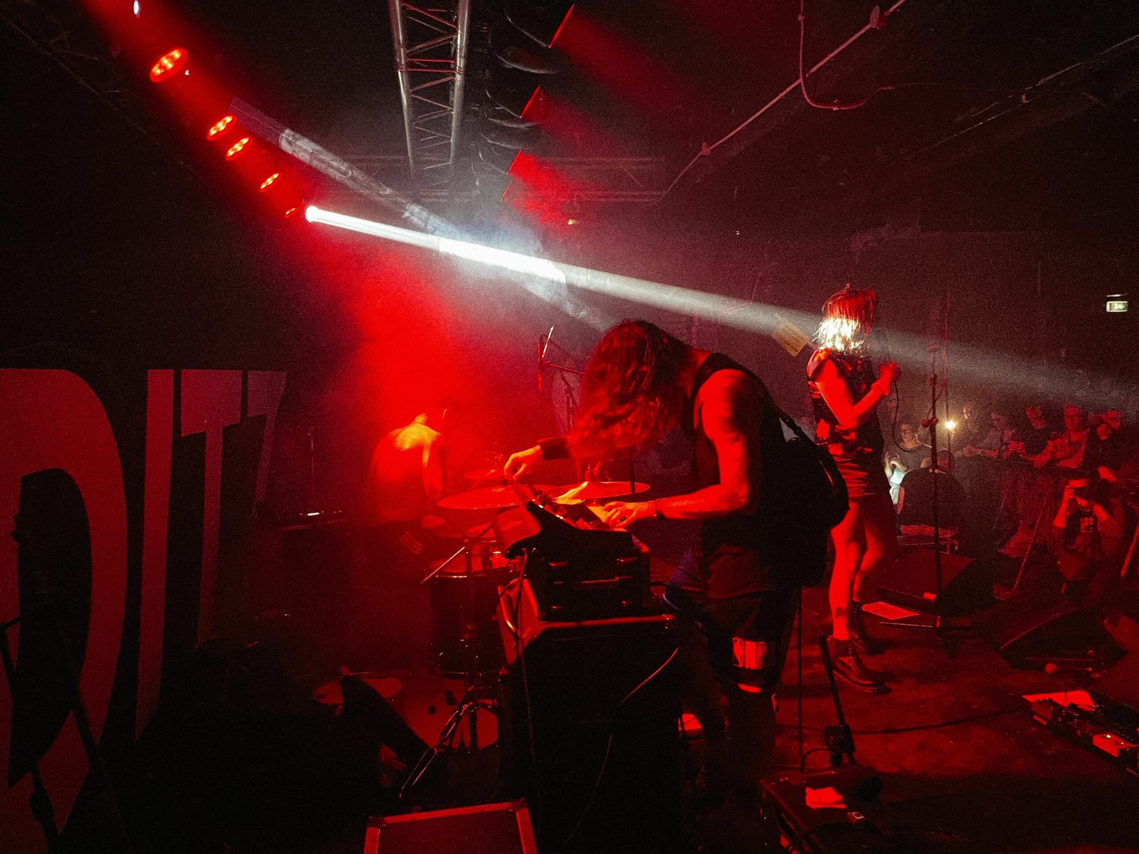 Dopo circa mezz’ora e un cambio palco che si prende le sue dovute tempistiche, i Ditz salgono sul palco senza troppe cerimoni verso le 22,15. Ed immediatamente ci travolgono in un vortice di distorsioni e scariche deflagranti