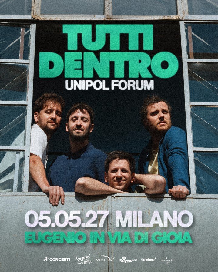 Il 5 maggio 2027 gli Eugenio in Via Di Gioia saliranno per la prima volta sul palco dell’Unipol Forum di Assago con TUTTI DENTRO, concerto evento prodotto da A1 Concerti e presentato come un evento collettivo, pensato per coinvolgere il pubblico che ha accompagnato la band nel corso degli anni.