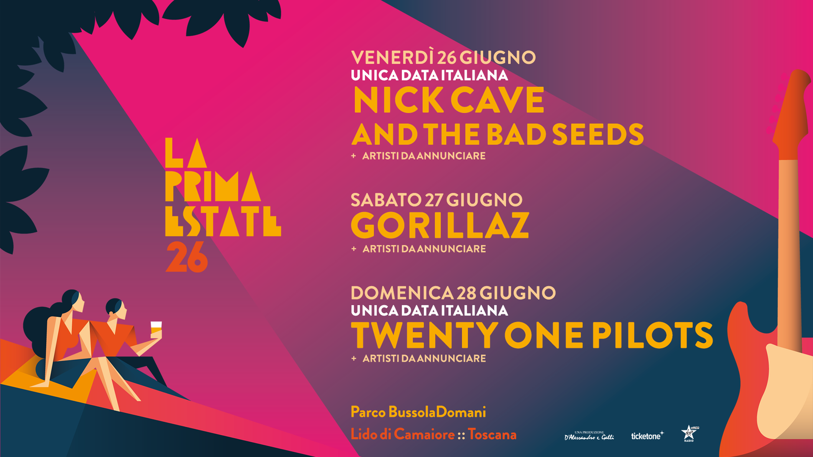 Nick Cave & The Bad Seeds, Twenty One Pilots e Gorillaz sono i primi headliners della line-up del festival, i primi due nell’unica data italiana del loro tour.