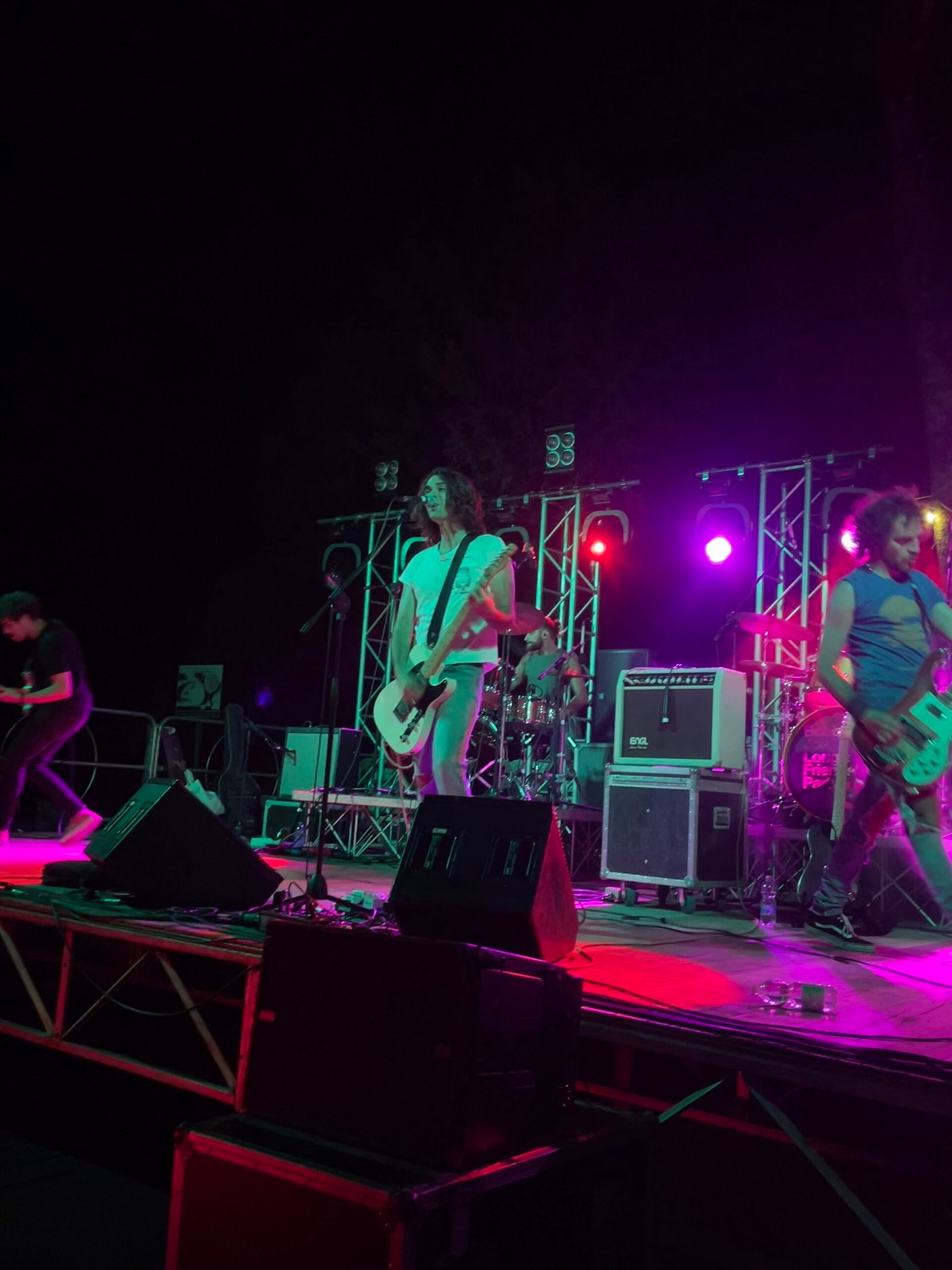Gli Stain sono la prima band a salire sul palco. Originari di Bari, si cimentano nell’interpretazione live di alcuni pezzi tratti dal loro primo album (Zeus del 2018) e dei successivi EP (Kindergarten del 2021 e Kindergarten pt. II uscito quest’anno) da cui emerge tutta la loro voglia di sperimentare suoni e combinare insieme varie influenze.  Il risultato è una fusione di elettronica, pop-rock  con accenni shogaze e rarefatti substrati dal sapore radioheadiano (sono loro stessi a citare la band capitanata da Thom Yorke come principale fonte d’ispirazione). I pezzi si muovono tutti in questo confuso pot-pourri stilistico di contaminazioni e stimoli che, seppur in parte apprezzabili, alla fine danno l’impressione che sì, hanno tanto da dire ma è come se volessero dirlo tutt’insieme, dando così meno importanza alle singole parti.