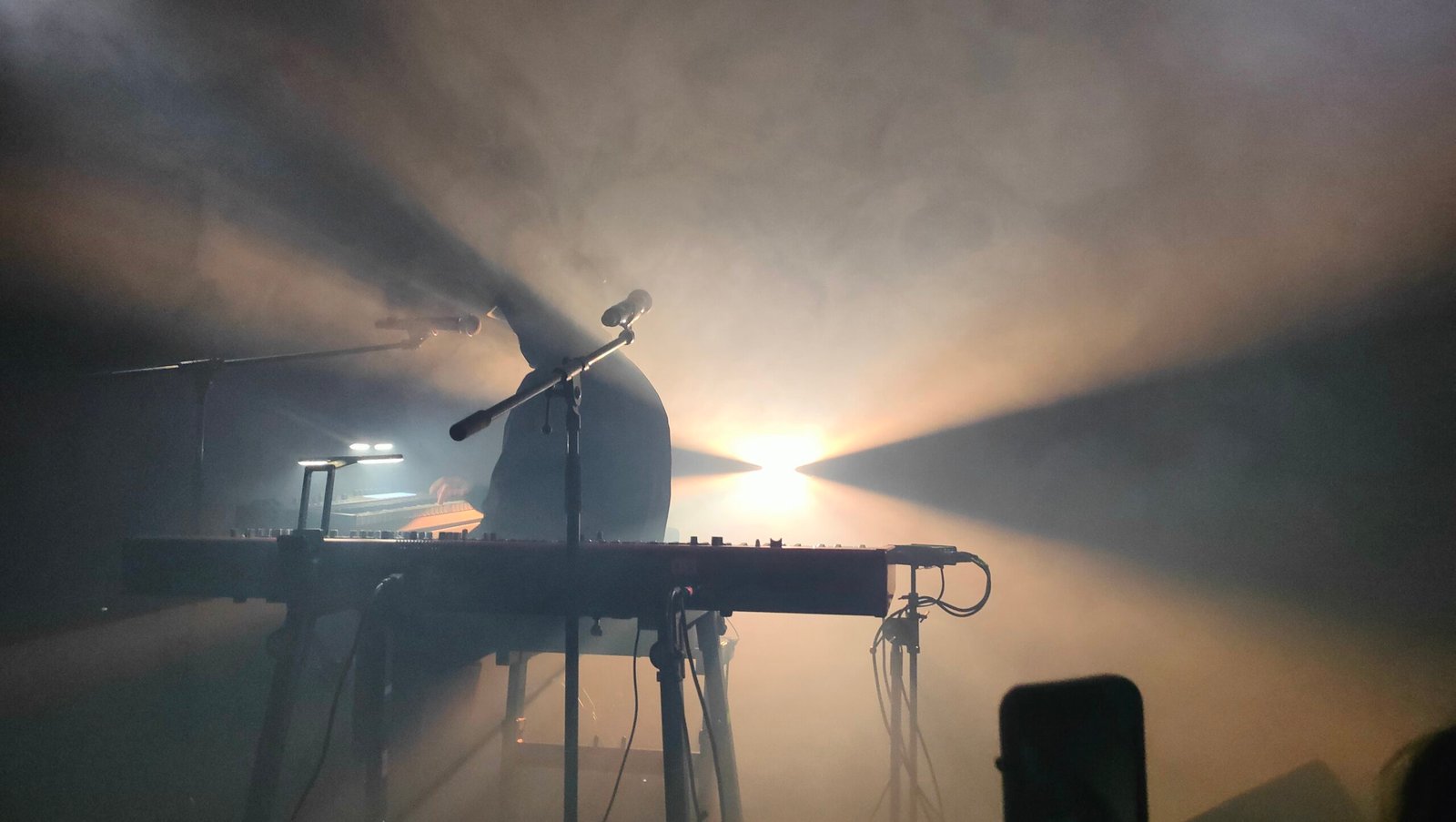 È un’atmosfera molto intima quella che si respira al Locomotiv la sera del 22 marzo. Il locale si riempie lentamente: giovani e giovanissimi, coppie e persone solitarie affollano gradualmente la sala. Sul palco due tastiere, due microfoni, un PC e un set minimale di luci.