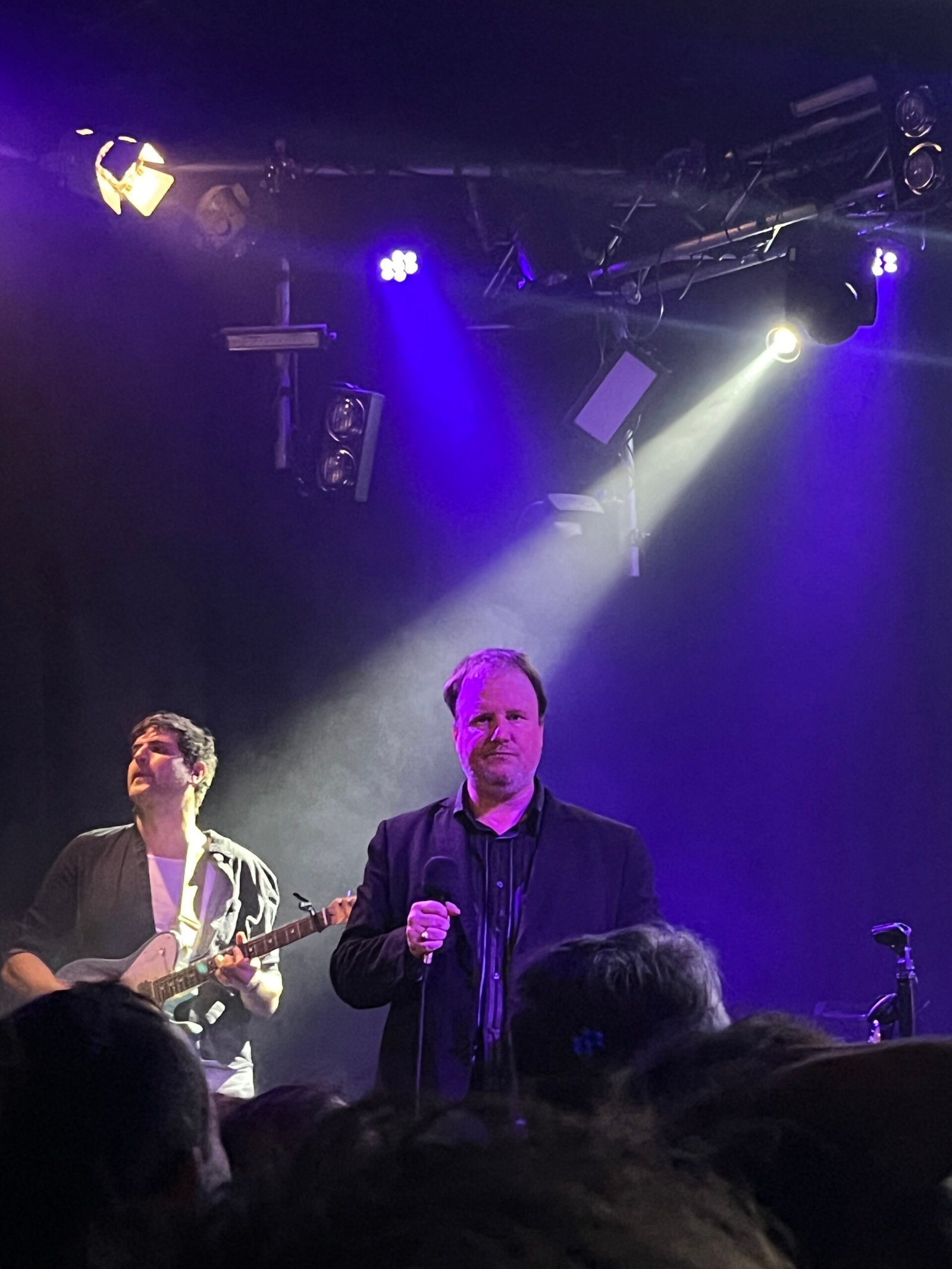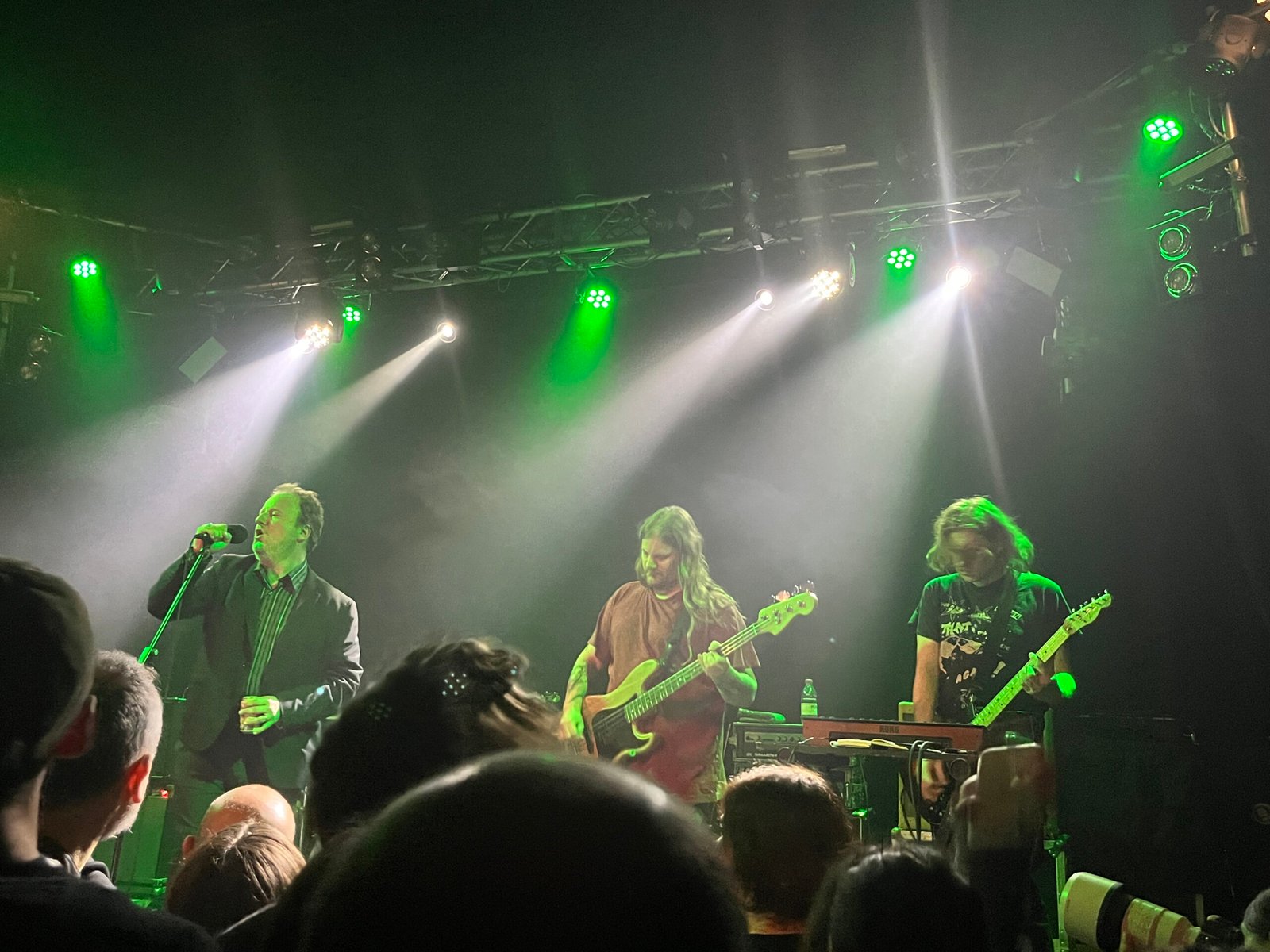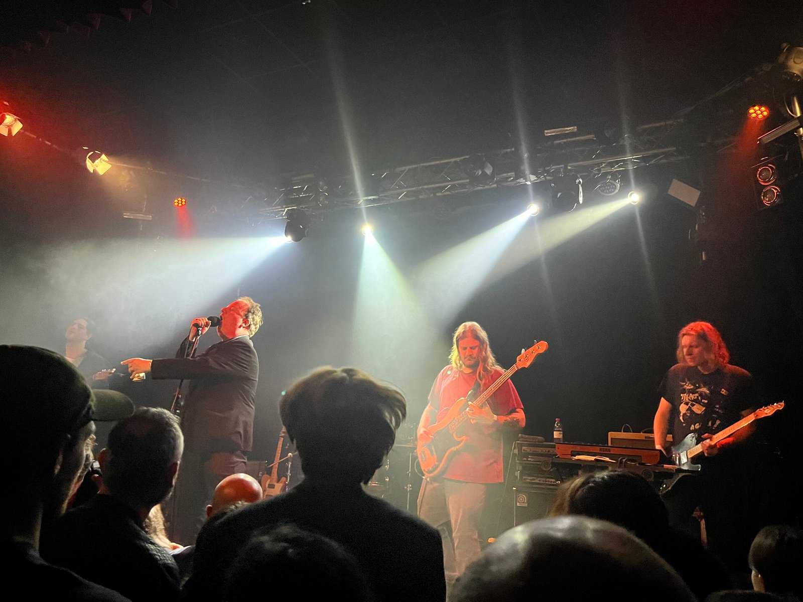 E’ questione di una mezz’oretta che sul palco iniziano ad apparire prima Greg Ahee, seguito poi dal resto della band capitanata dalla suggestiva presenza di Joe Casey, agghindato con camicia e blazer scuri che gli donano un’aria da di conduttore del suo stesso spettacolo, impugnando una birra in lattina che lo accompagnerà per tutto il live. E da lì pochi compromessi: l’introduzione allo spettacolo è affidata all’esplosione di “Make Way” e “3800 Tigers” da Formal Growth in the Desert con cui immediatamente ci si immerge negli avvolgenti riff di basso scuola darkwave, i riff sono un continuo susseguirsi di sonorità taglienti che hanno quasi il dovere di coinvolgere il pubblico in una macabra danza punk. A proposito, è tanto esilarante quanto inquietante il momento in cui Casey redarguisce qualcuno dal pubblico colpevole di chiacchierare allegramente con un allegro ‘We are not here for chatting, shut the f**k up!’. La sua presenza è quella di un anima tormentata sul palco, che cerca continuamente il contatto visivo col pubblico per spaventarlo col suo tono di voce grave, per poi voltarsi, spesso di spalle, e lanciarsi col suo cantato più viscerale nei momenti più propriamente punk, che lo rendono una delle voci più riconoscibili del panorama.