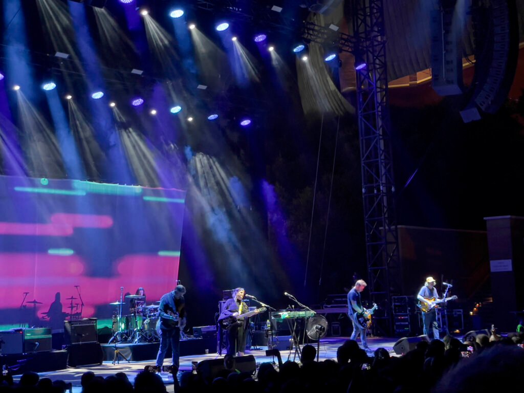 La restante ora e mezza sarà una sequela dei brani imprescindibili della loro discografia con le più recenti produzioni. Troviamo “Alison”, “When The Sun Hits”, “40 days” “Souvlaki Space Station” (tratti da quella gigantesca pietra miliare che ha permesso di delineare i connotati di un genere, Souvlaki del 1994), “Slomo” “Star Roving” e “Sugar For The Pill” (dall’omonimo disco che ne ha consacrato il ritorno nel 2017). Immancabile già da un po’ nella setlist, inoltre, la cover di “Golden Hair” di Syd Barrett che chiude la tranche prima dell’encore con Rachel che recita le strofe, uscendo dal palco e lasciando il resto della band ad una lunga coda strumentale e l’immagine di Barrett proiettata sullo sfondo. Ma ci sono anche i nuovi brani “shanty”, “kisses”, “skin in the game” (tutti con la lettera minuscola) che sono già entrati a pieno titolo nel loro repertorio.