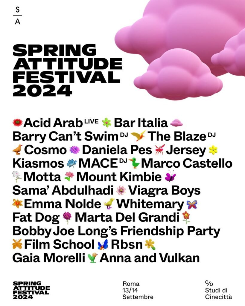 Forte dello straordinario successo dell’ultima edizione che ha fatto registrare 23.000 presenze e del consolidamento di una rete di importanti relazioni istituzionali, Spring Attitude 2024 si concentra ancora di più sulle direzioni perseguite negli ultimi anni, contribuendo a cambiare il profilo culturale della Capitale. A partire da una line up sempre più trasversale e una proposta musicale eterogenea – dall’ elettronica al cantautorato, dall’alt rock all’ indie – in grado di intercettare le sensibilità di pubblici generazionalmente diversi. Ideata con cura, eleganza, curiosità e un grande gusto per la ricerca.